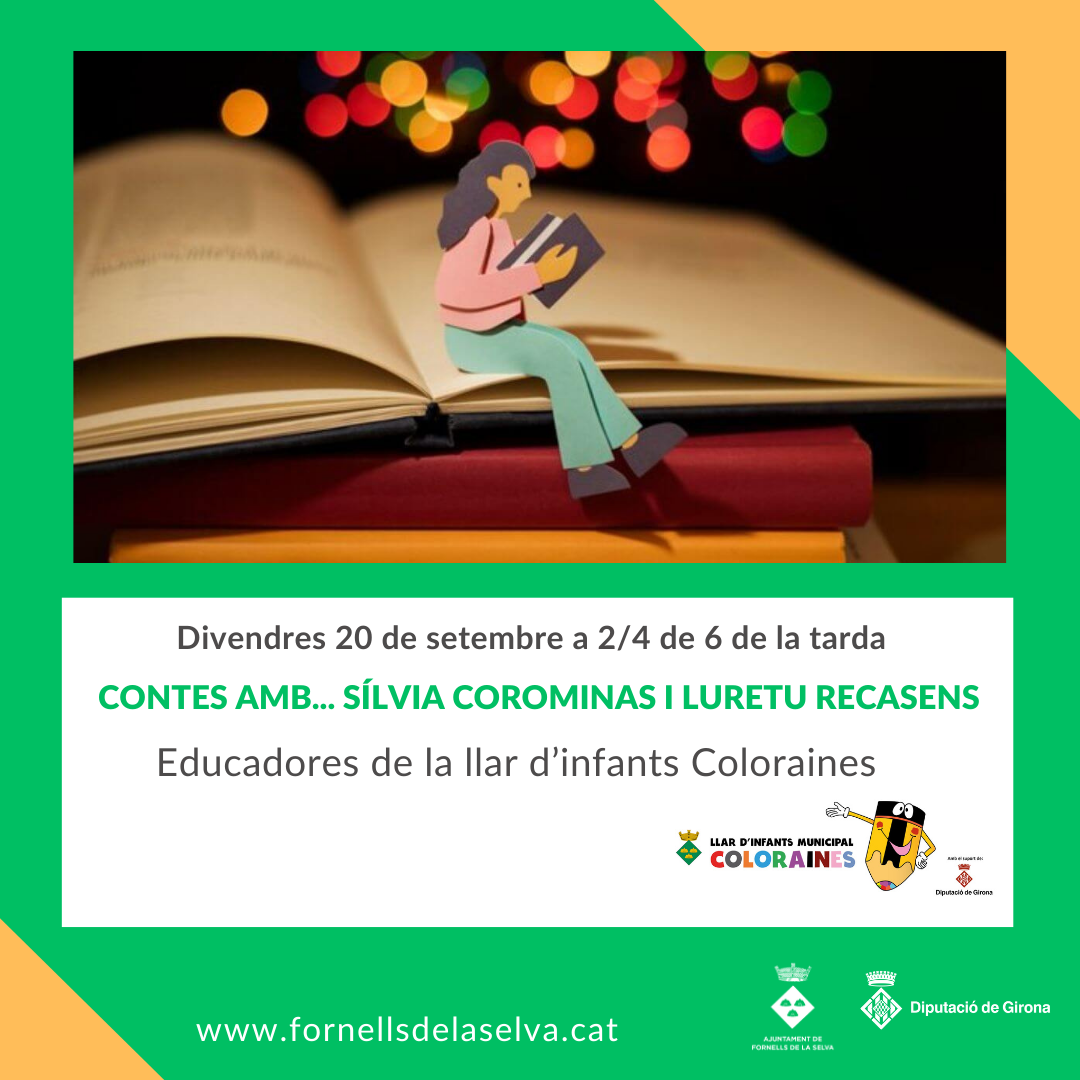 Diumenge 22 de setembre de 10 a 1 del matíLa Sílvia i la Luretu, educadores de la llar d’infants municipal Coloraines, visitaran la biblioteca per compartir amb els nens i nenes els contes que més els hi agraden. Activitat familiar. Contes infantils.