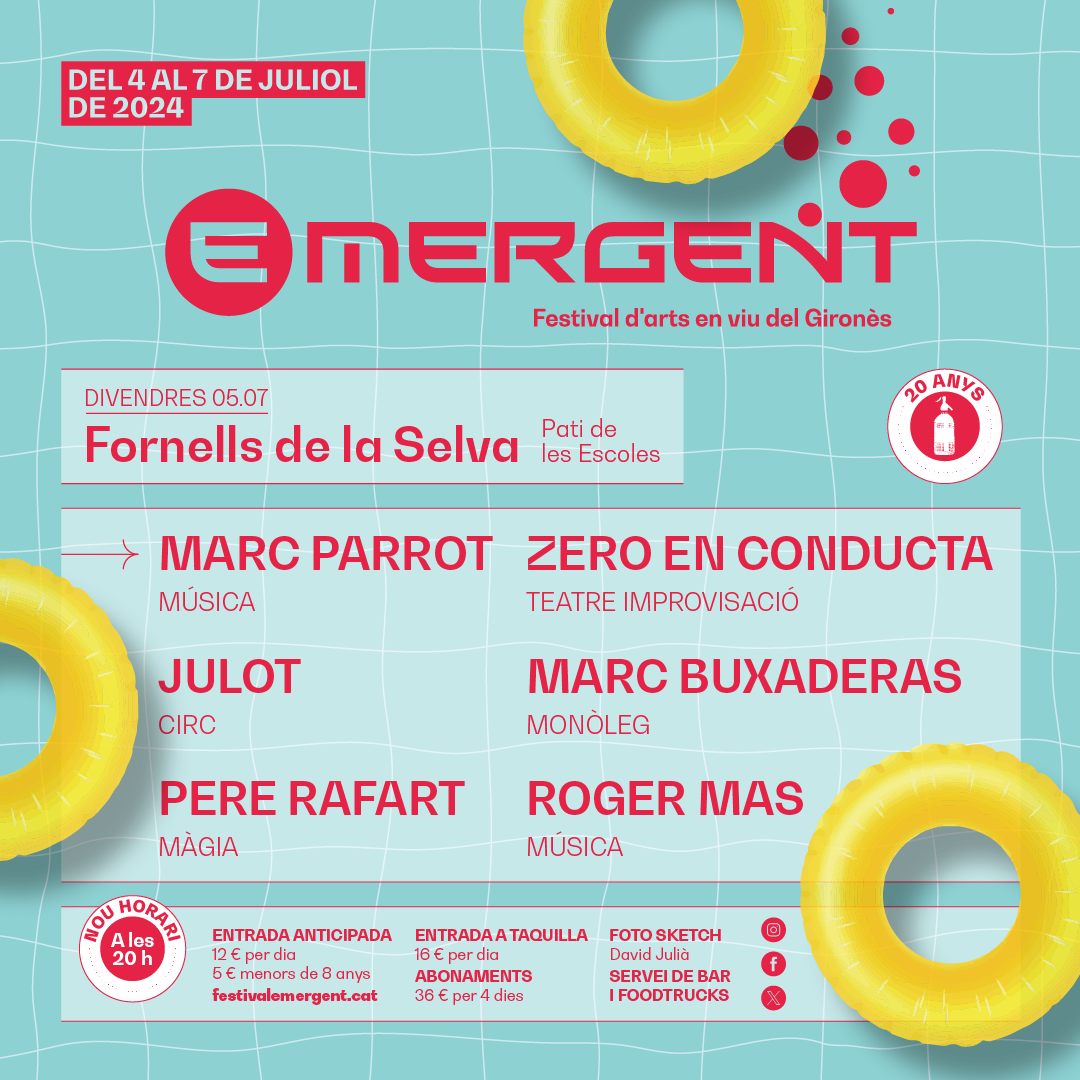 Diumenge 14 de juliol d'11 del matí a les 6 de la tardaTorna el Festival Emergent a Fornells, el 5 de juliol a les 8 del vespre al pati de l’Escola forn d’Anells. L’Emergent és una proposta multidisciplinària d’arts en viu que té lloc a diferents municipis de la comarca del Gironès. Aquest any a Fornells gaudirem de la música de Marc Parrot i Roger Mas; ens […]