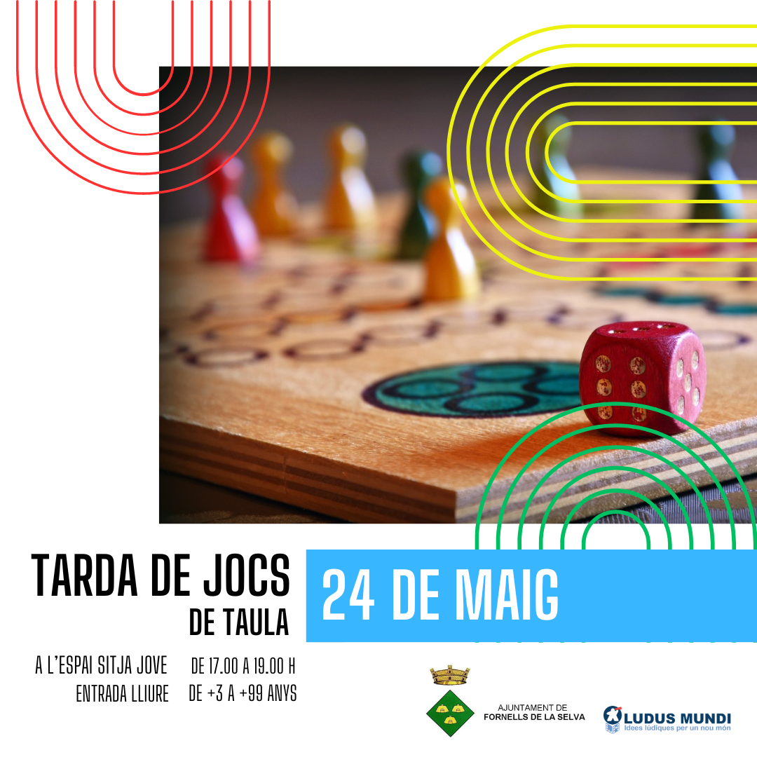 Diumenge 26 de maig a les 6 de la tardaDescobrirem una pila de jocs de taula per a grans i petits de la mà de Ludusmundi. Els menors han d’anar acompanyats d’un adult. Per a totes les edats a partir de 3 anys. Entrada lliure. Ho organitza: Ajuntament de Fornells de la Selva