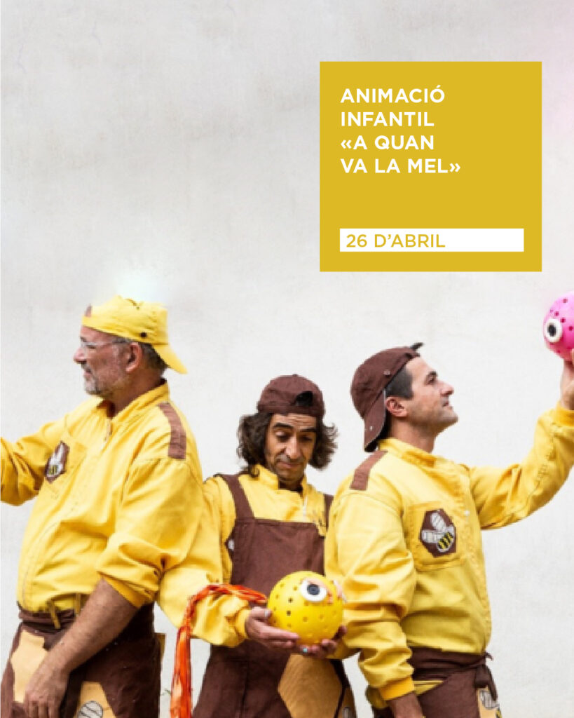 Agenda Animació infantil «A quan va la mel» Dissabte 26 d'abril a 2/4 de 6 de la tarda | Pavelló Polivalent Entrada lliure, hi haurà servei de bar. Ho organitza: Agrupació Cultural < Entrada AnteriorEntrada Posterior >