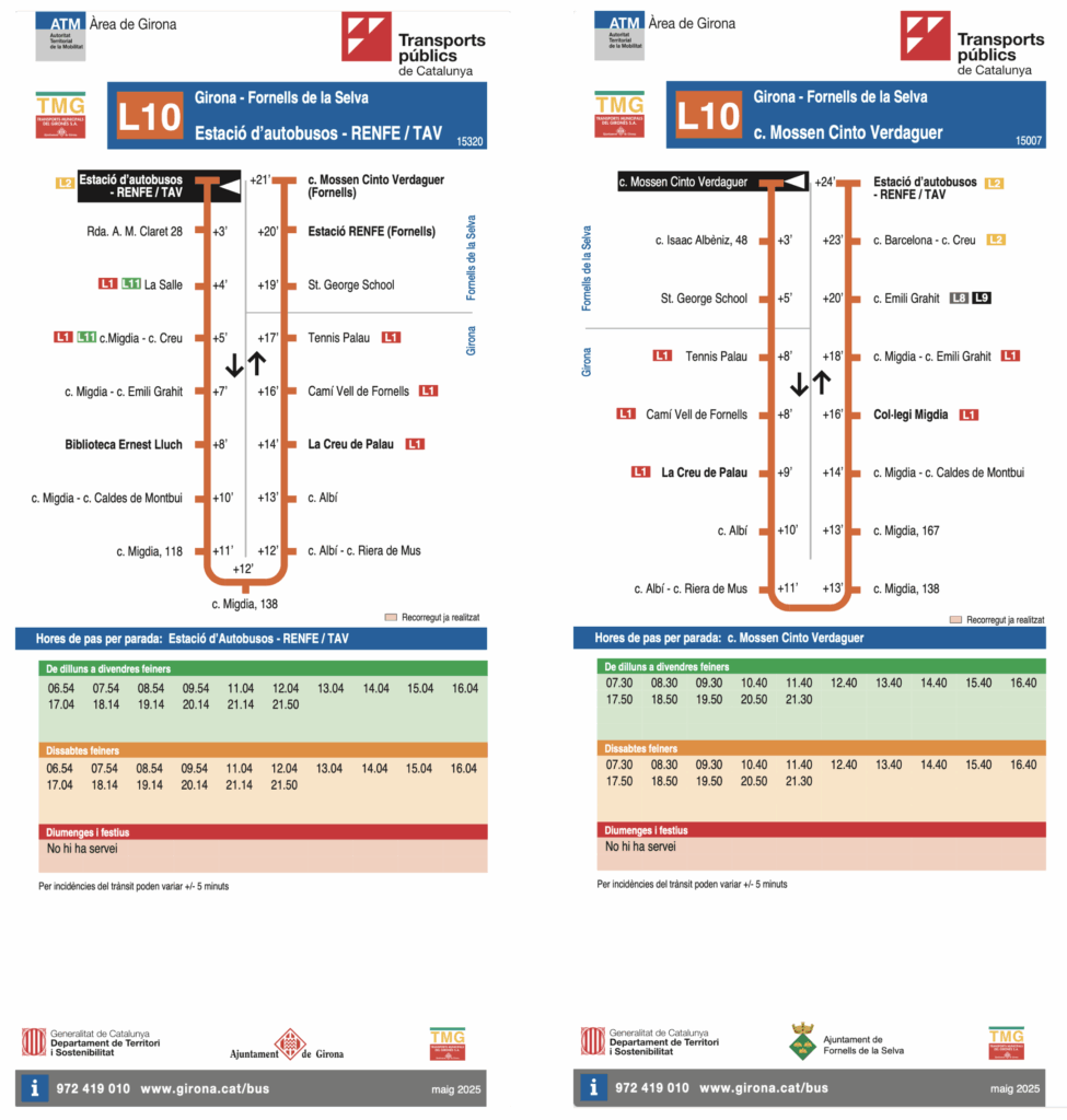 HORARIS DE TRANSPORT PÚBLIC FORNELLS DE LA SELVA