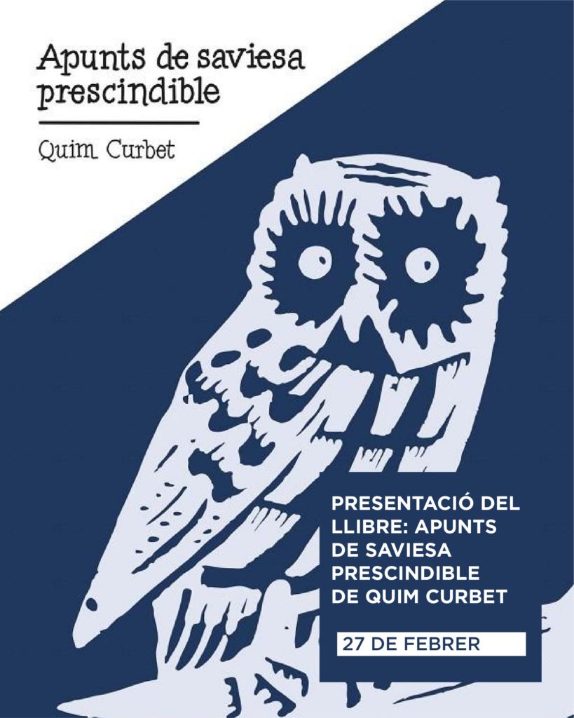 Agenda Presentació llibre: Apunts de saviesa prescindible de Quim Cubert Divendres 27 de febrer a 2/4 de 8 de la tarda | Biblioteca Municipal Quim Curbet presentarà el seu nou llibre. “Una mirada irònica i erudita , al bagatge delsnostres records quotidians” < Entrada AnteriorEntrada Posterior >